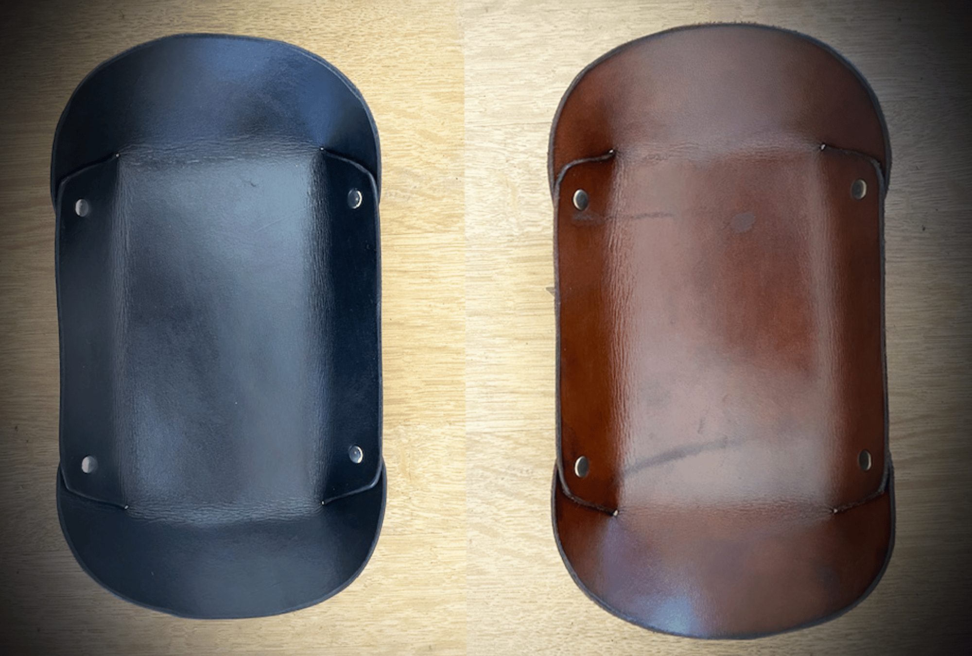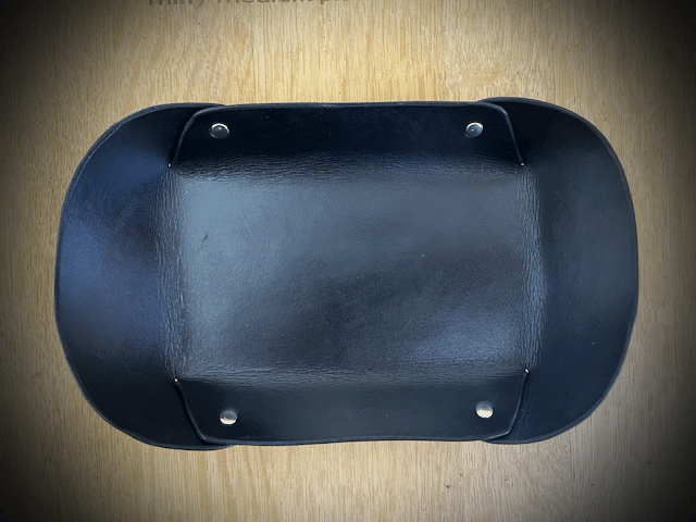 Made from 6oz. top grain leather, secured with antique brass and chromed rivets. Dimensions are approximately 8.75" L x 5.25" W x 1.5" H. Hand finished in Marine Black and Walnut Brown, fantastic way to keep your EDC together and ready to go!