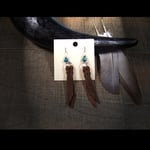 These earrings are made from surgical stainless steel and suede with genuine turquoise or coral beads. Dimensions are 1/4 inch by 2 1/2 inches long.