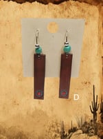 These earrings are made from surgical stainless steel, suede with genuine turquoise or coral beads. Dimensions are approximate.